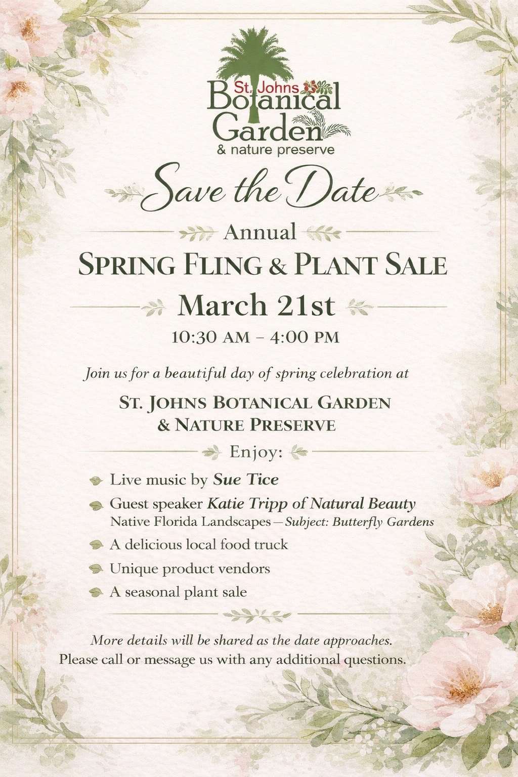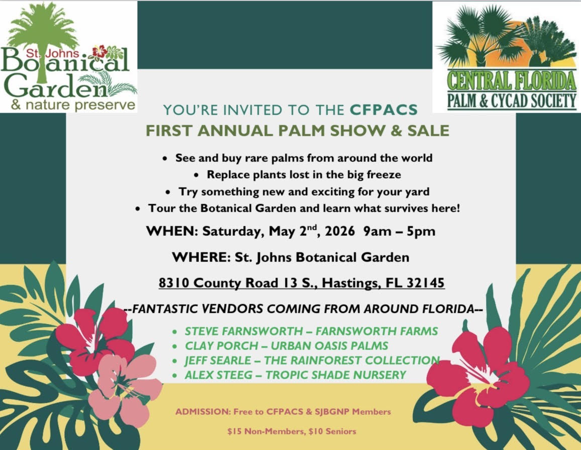 By submitting this form, you are consenting to receive marketing emails from: St. Johns Botanical Garden and Nature Preserve, 8310 COUNTY RD 13 S, HASTINGS, FL, 32145, http://stjohnsbotanicalgarden.org. You can revoke your consent to receive emails at any time by using the SafeUnsubscribe® link, found at the bottom of every email. Emails are serviced by Constant Contact